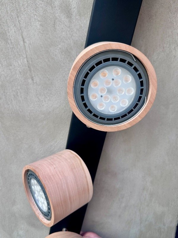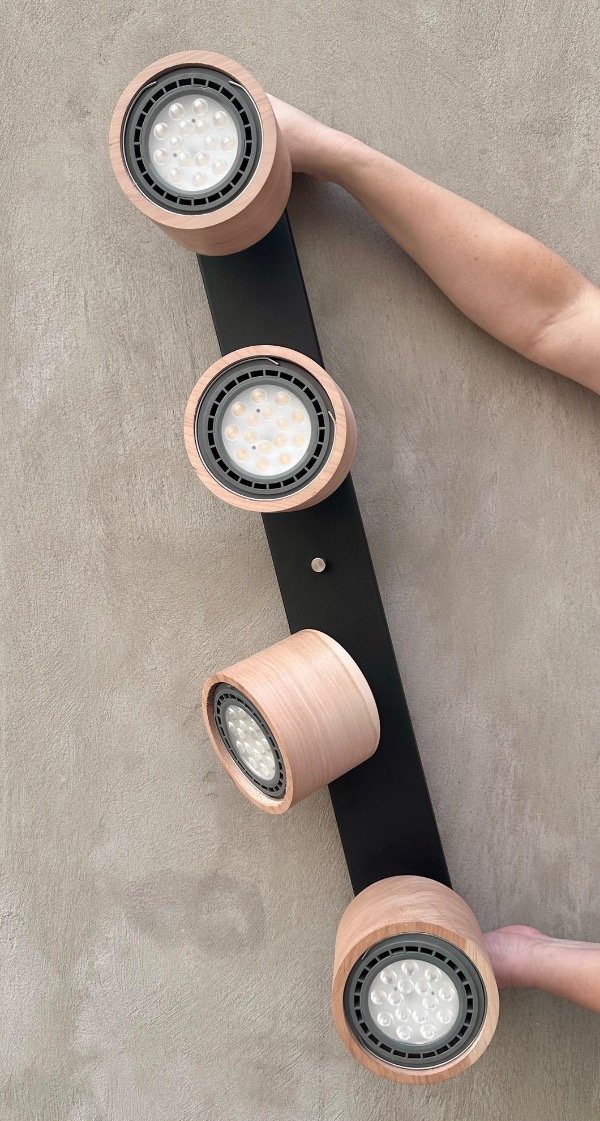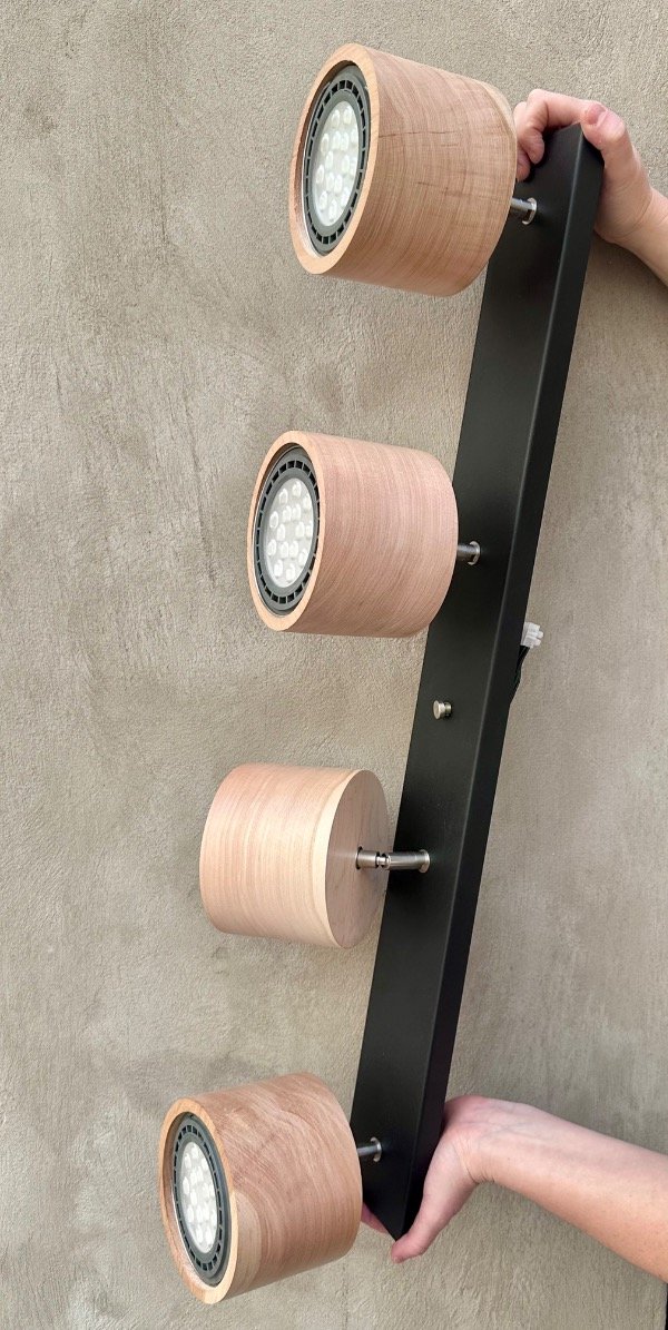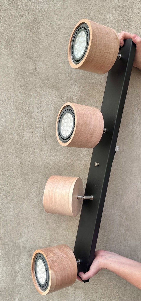 El Barral Oslo acompaña el espacio con una estética limpia y moderna, integrando la calidez de la madera con la solidez del hierro. Su formato lineal permite distribuir la luz de manera equilibrada, aportando presencia sin recargar el ambiente.